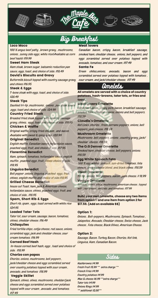 Welcome to The Maple Bar Cafe, a trendy eatery in Suisun City that caters to breakfast, brunch, and lunch enthusiasts! Nestled at 314 Spring St, this cafe is not just a place to eat; it’s a vibrant experience. The menu boasts an array of delicious options, including burgers, sandwiches, and tantalizing breakfast dishes like the famous cinnamon roll pancakes and juicy meat lovers' scramble.